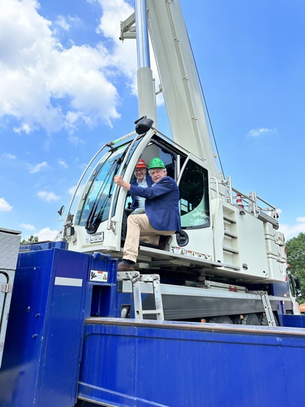 De bouw van de levensloopbestendige woningen aan de Prinses Beatrixstraat in Echt is in volle gang. Vandaag hesen wethouders Hub Meuwissen (Ruimtelijke ordening) en Peter Pustjens (Wonen) van gemeente Echt-Susteren de achtergevel van de begane grond op de juiste plek.