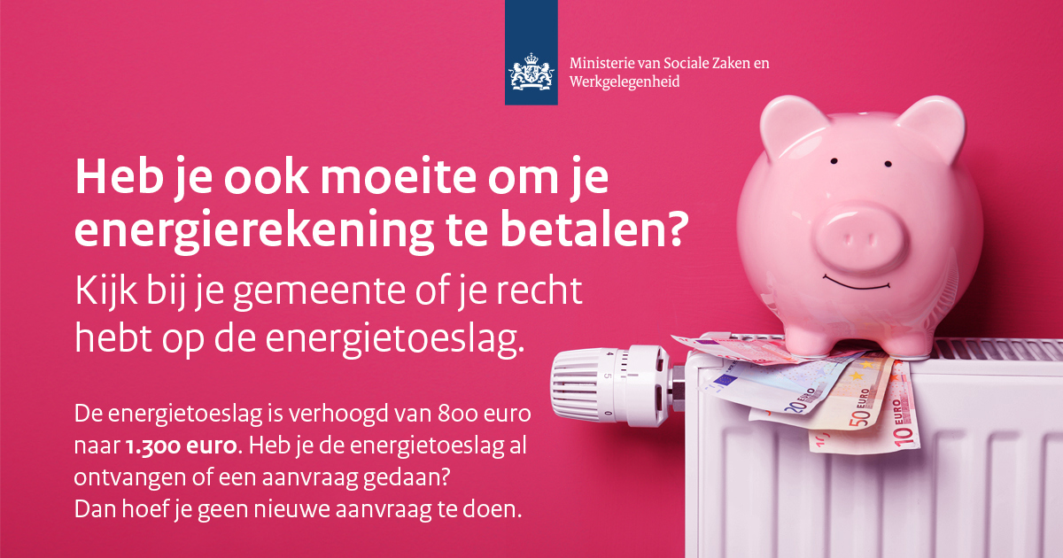 Energietoeslag verhoogd naar 1.300 euro
